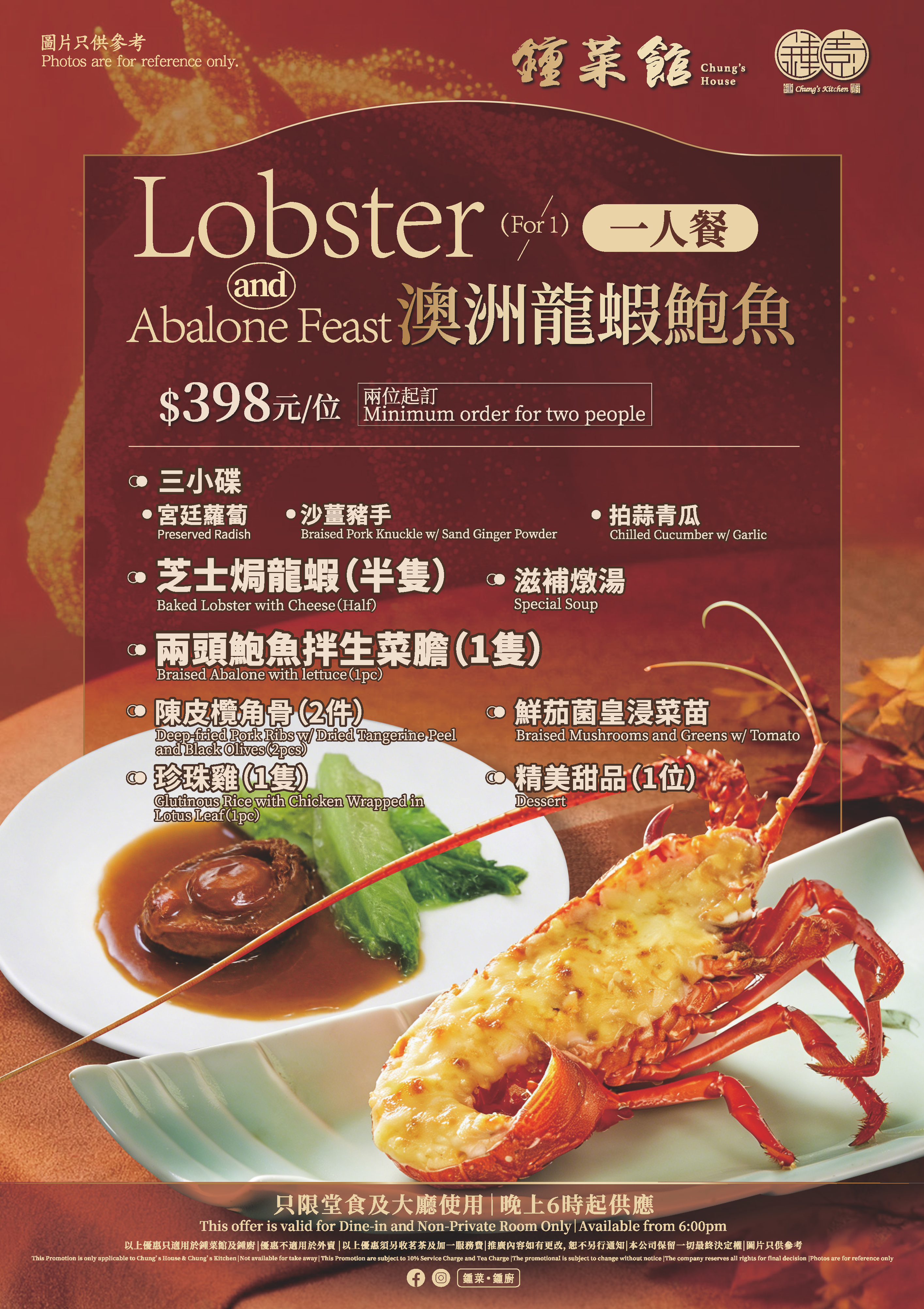 .鍾廚 澳洲龍蝦鮑魚一人餐(2位起訂)