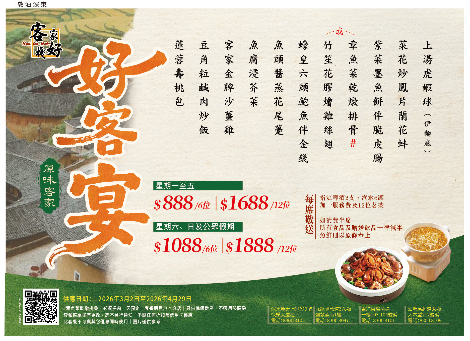.好客宴【適用於東環、佐敦、深水埗、油塘大本營分店】